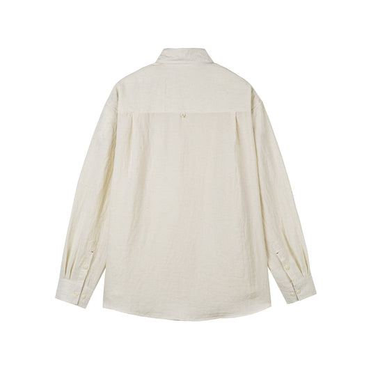 Solid Color Patch Pocket Loose Unisex Linen Long Sleeve Shirt