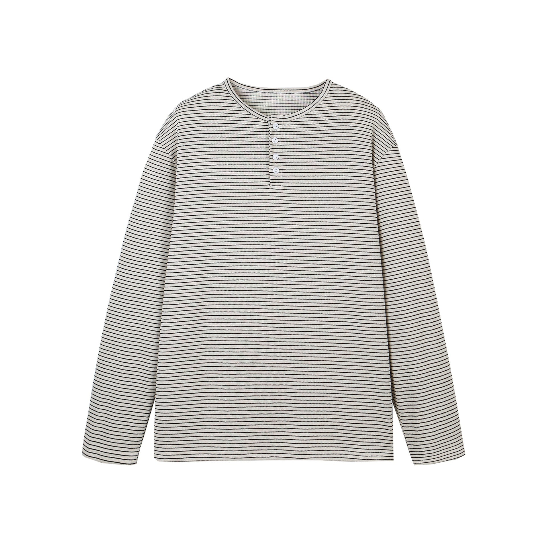 Loose-Fit Henley Striped Long Sleeve T-Shirt for Men and Women